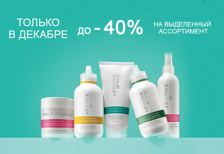 Декабрь — это время волшебства, подарков и приятных сюрпризов. В честь приближающихся праздников интернет-магазин Philip Kingsley подготовил для вас особенное предложение: до конца месяца действует скидка 40% на выделенный ассортимент продукции